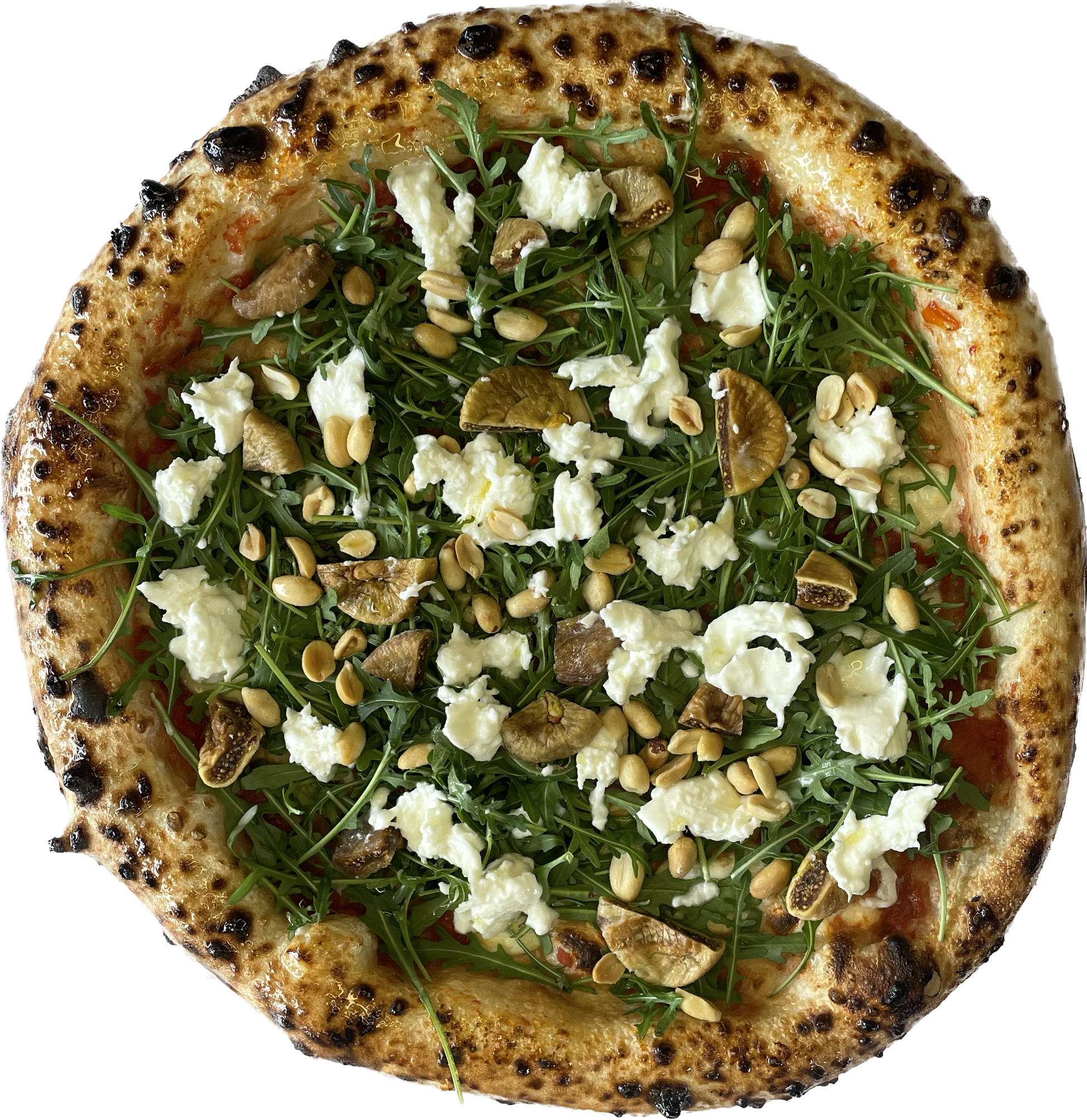 San Marzano, Fior di Latte, Büffelmozzarella, Feigen, Rucola, Erdnüsse